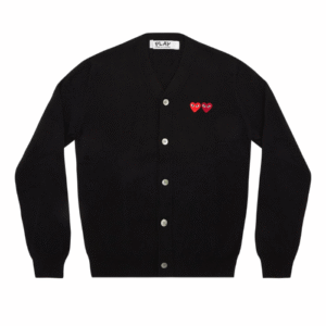 CDG PLAY V-Neck Cardigan with Double Emblems Black