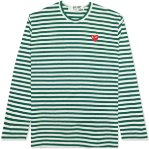 CDG PLAY Big Red Heart Striped L/S T-Shirt (White/Green)