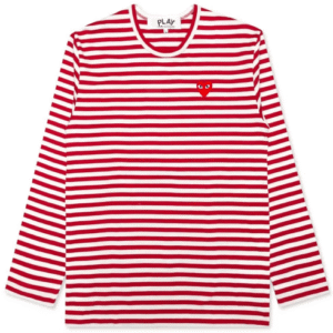 CDG PLAY Big Red Heart Striped L/S T-Shirt (White/Red)