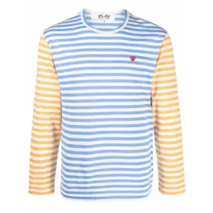 CDG Play Embroidered Logo Striped Long-Sleeve Blue/Yellow Tee