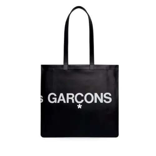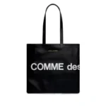 Crafted from durable coated canvas, the tote ensures lasting use while maintaining a sleek silhouette. Its deep black body serves as the perfect backdrop for the oversized COMME des GARÇONS logo emblazoned across the front, giving it a modern edge that commands attention. The spacious main compartment accommodates daily essentials with ease—whether it’s your laptop, documents, or shopping items—offering convenience without compromising on style.