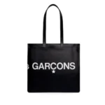 The CDG Huge Logo Tote Bag Black SA9001HL features sturdy leather handles, ensuring comfort and strength for everyday carry. Inside, you’ll find a practical open layout that makes organization simple and efficient. It’s designed for those who value clean lines, high-end materials, and bold branding—a true reflection of Comme des Garçons’ distinctive aesthetic.