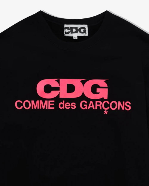 Crafted from high-quality cotton, the sweatshirt offers a soft, breathable, and durable fabric that ensures all-day comfort. The striking pink logo boldly contrasts against the deep black background, giving the piece a unique and stylish edge that is unmistakably CDG. Perfect for layering or wearing on its own, this sweatshirt brings together functionality and fashion effortlessly.