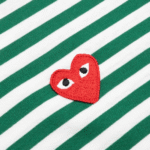 Elevate your everyday style with the timeless and effortlessly fashionable CDG PLAY Big Red Heart Striped L/S T-Shirt (White/Green). This piece blends classic design with bold details, making it an essential choice for anyone who loves clean, modern streetwear. The signature red heart logo on the chest adds a playful yet iconic touch that stands out while remaining simple and refined.