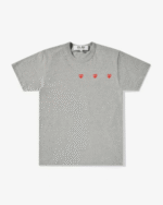 What makes the CDG Play Multi Red Heart T-Shirt Grey unique is its artistic yet modern approach to fashion. The repeated red heart logos across the front enhance its statement look, while maintaining the subtle sophistication that Comme des Garçons is known for. Perfect for both men and women, this unisex tee is a must-have for fashion enthusiasts who appreciate timeless design with a bold twist.